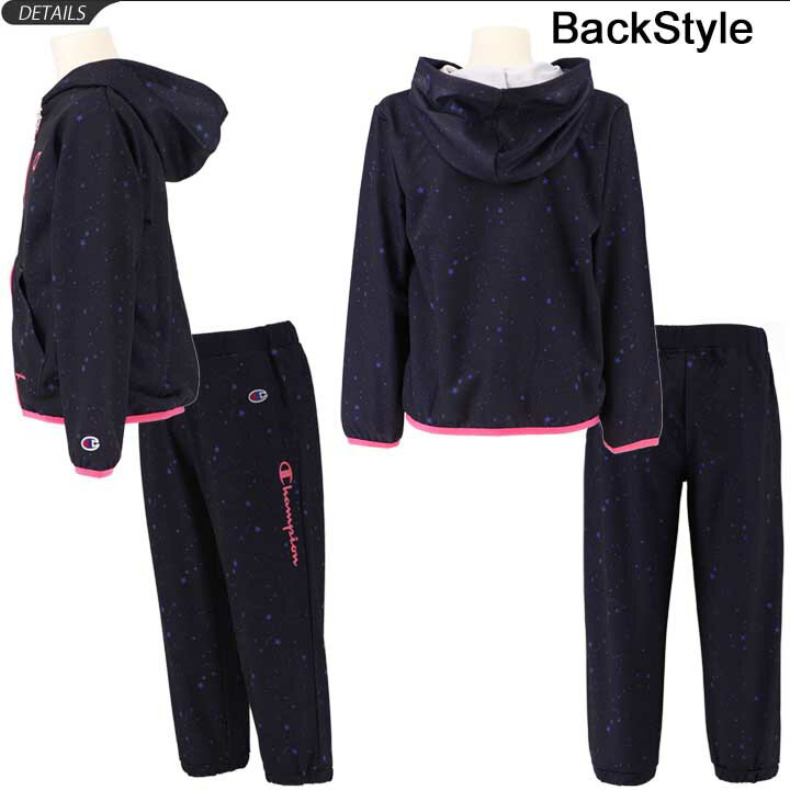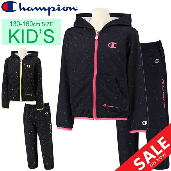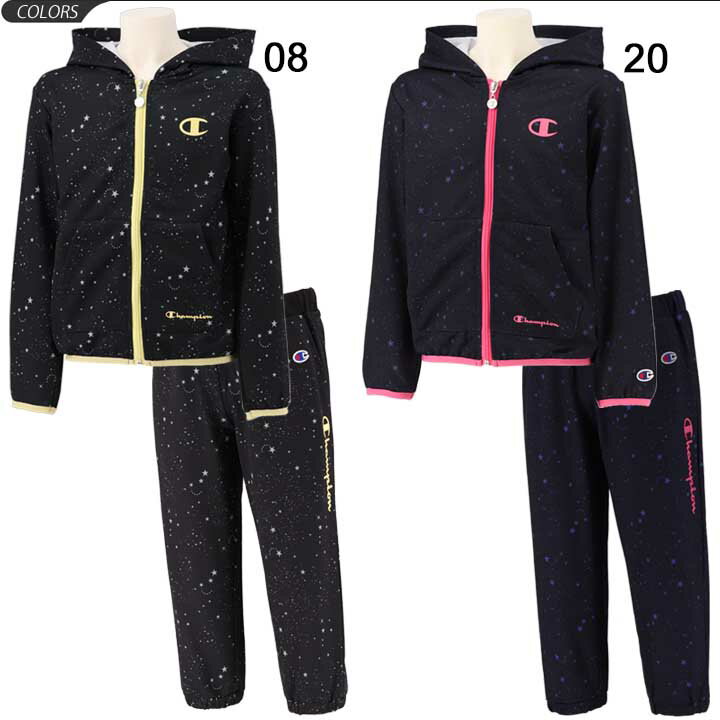 キッズウェア ジャージ 上下セット ジュニア 女の子 子供服 チャンピオン champion 薄手 裏起毛 フルジップパーカー クロップド 7分丈パンツ 上下組 130-160cm スポーツウェア 星柄 総柄 セットアップ 運動 普段使い 部屋着/CJ4306-CJ4307