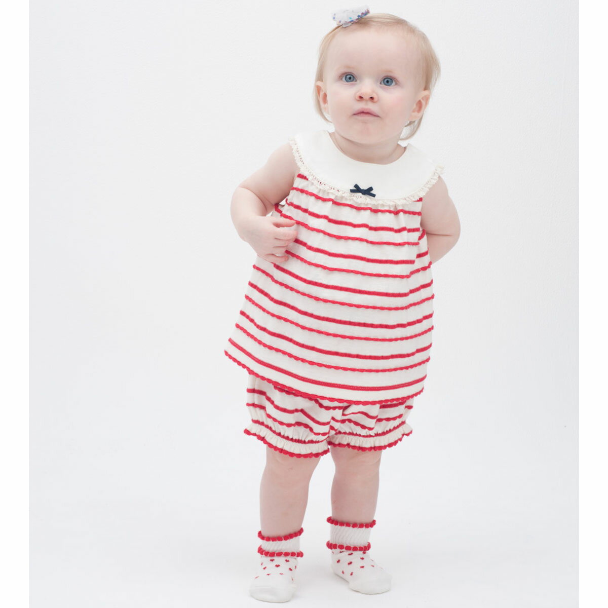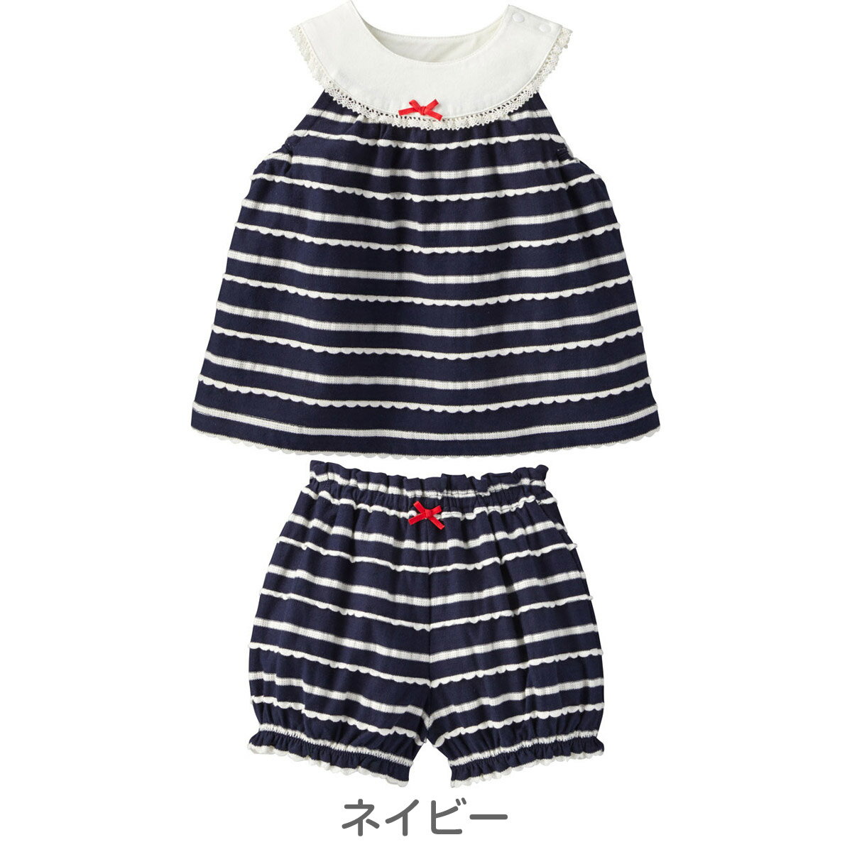 チュニック&ブルマセット(ピコボーダー){女の子}《コンビミニ Combi mini》【70cm 80cm】|ネイビー レッド ノースリーブ トップス ボトムス おしゃれ 可愛い ベビー キッズ 子供服 新生児 服 新生児服 ベビー服 出産祝い 夏 赤ちゃん セットアップ セット 夏服 ベビーウェア