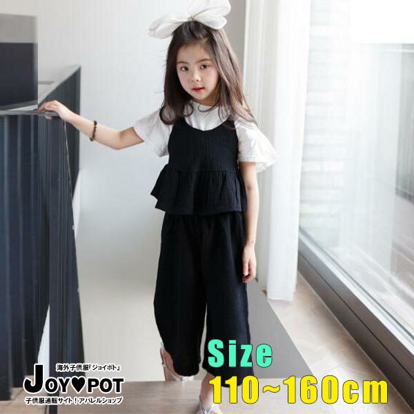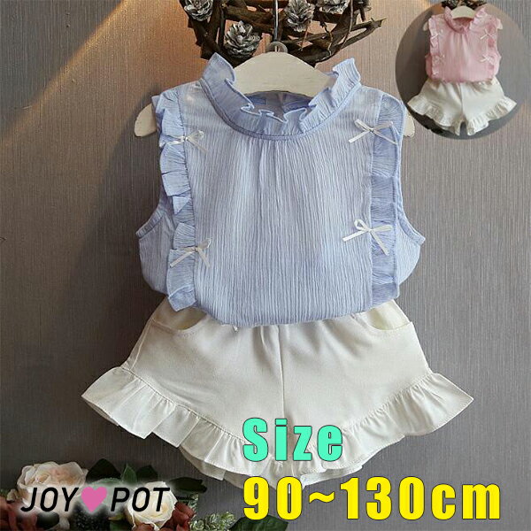 子供服 キッズセットアップ ノースリーブブラウス ガウチョパンツ 上下セット 女の子 韓国キッズセットアップ 無地 おしゃれ フリル 100 110 120 130 140 150