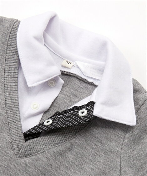 ベビー Vネック 重ね着風 フォーマル 半袖 カバー オール 男の子 子供服・ 服 カバーオール ロンパース グレー系/黒系 身長70/80cm ニッセン