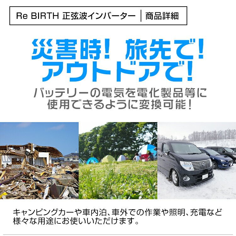 バッテリーの直流24Vを交流100Vに変換! 正弦波でより安定した100Vを供給します。