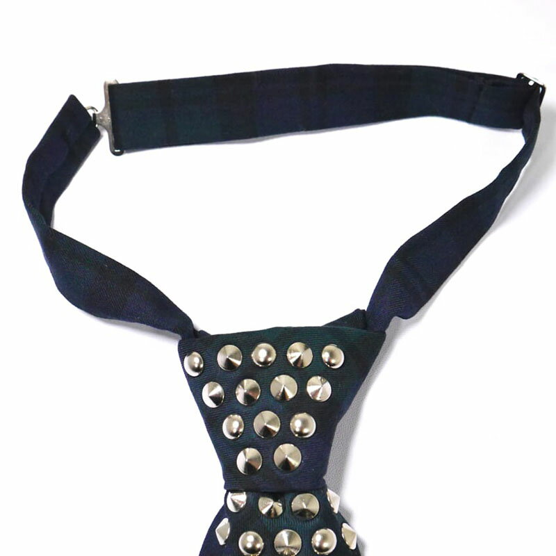 こちらは、タータンチェックの生地にスタッズを施した、首ひもで調整できるタイプのネクタイです。