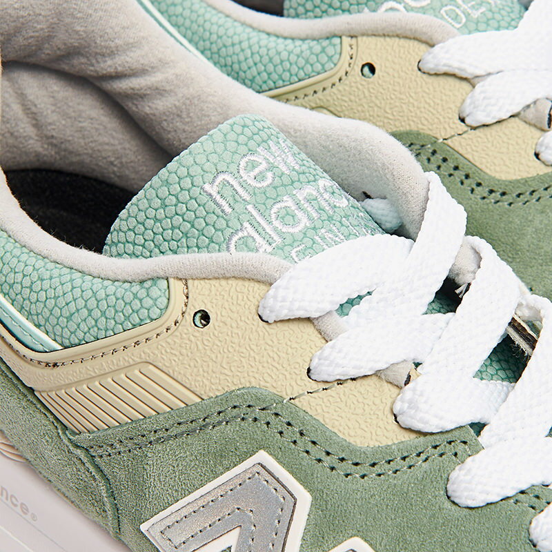 厚みのあるソールに小ぶりなサイドNロゴが特徴の今作、ミントカラーのスエード&メッシュアッパーで通年ヘビロテ必至の一足。