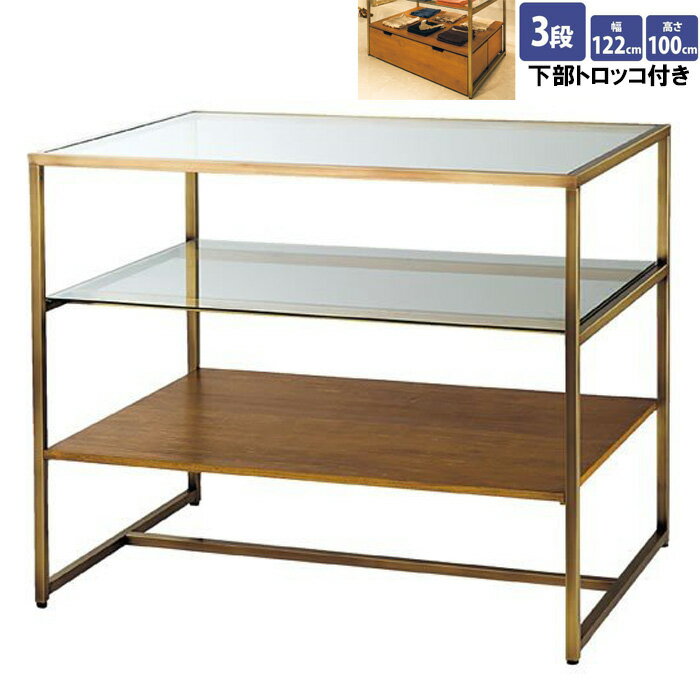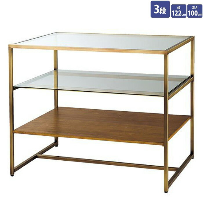 アンティークゴールド 3段テーブル 高さ100cm 透明強化ガラス棚板 アジャスター付き EX6-87-1-1【代金引換不可】【北海道・沖縄・離島送料別途】