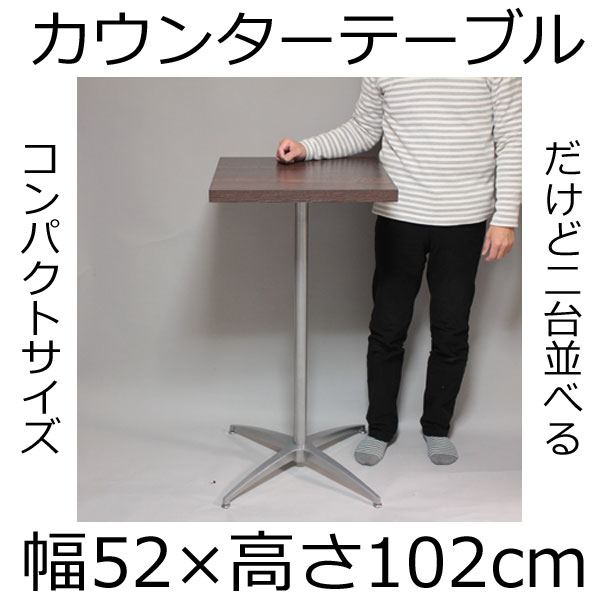 カウンターテーブル・ハイテーブル 幅52×奥行52×高さ102cm ダークブラウン【カフェルック】【訳あり】【アウトレット】