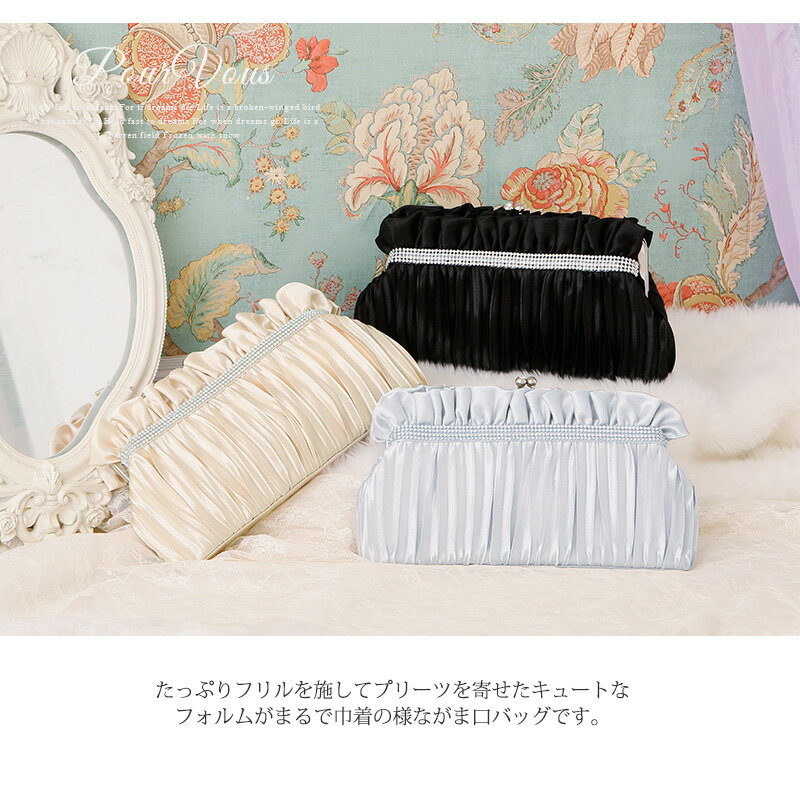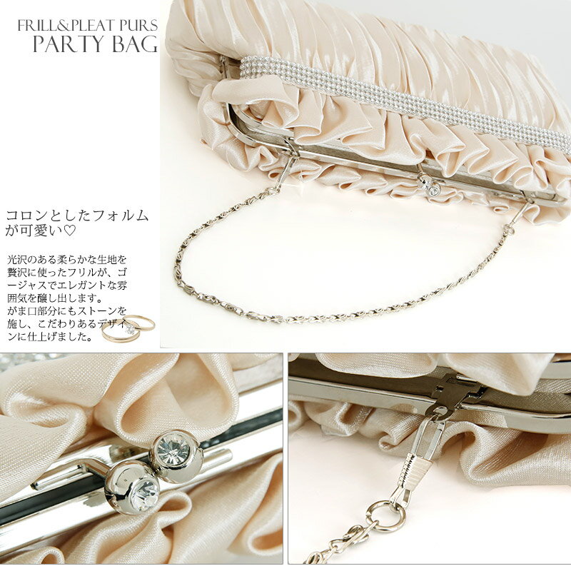 パーティーバッグ 結婚式 クラッチバッグ がま口 ショルダーバッグ ラインストーン フリル チェーン パーティーバッグ サテン プリーツ 激安 他と被らない 同窓会 成人式 韓国