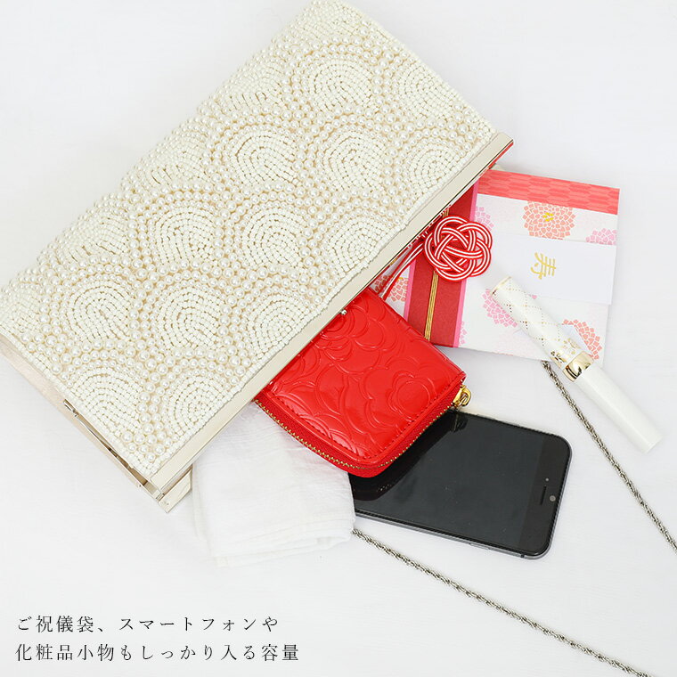 お祝儀袋やスマートフォンなどの必需品・ご祝儀袋が入り、 収納力も兼ね備えたクラッチバッグ。