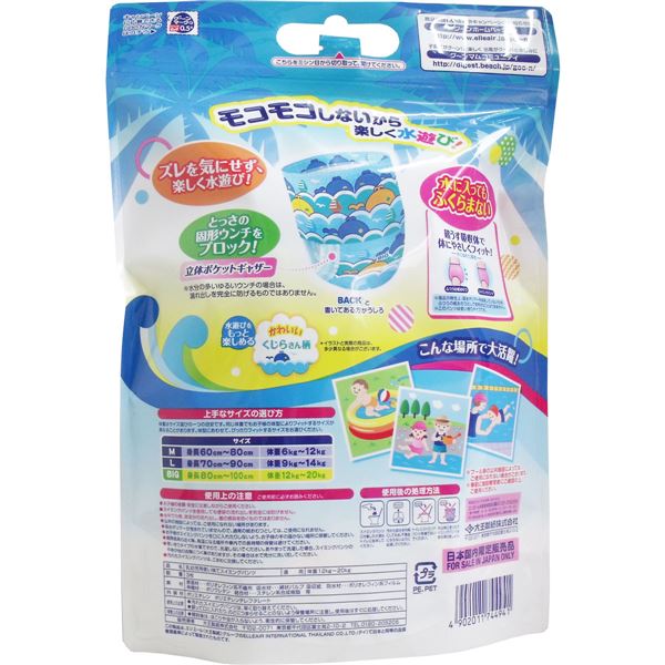 ・お子様がスイミングパンツを口に入れたりしないよう、お子様の手の届かない場所に保管してください。